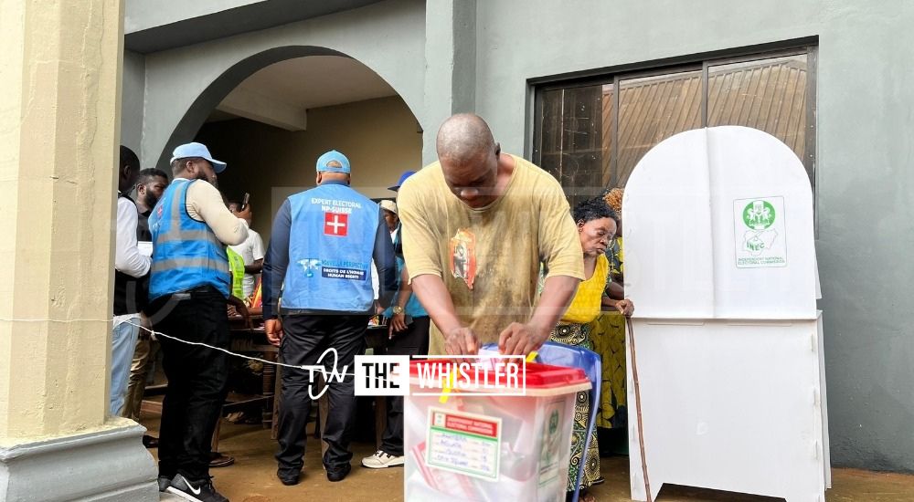 THE WHISTLER observed a much larger crowd compared to other polling units. Voters were also offered seats beneath canopies while waiting to exercise their franchise.