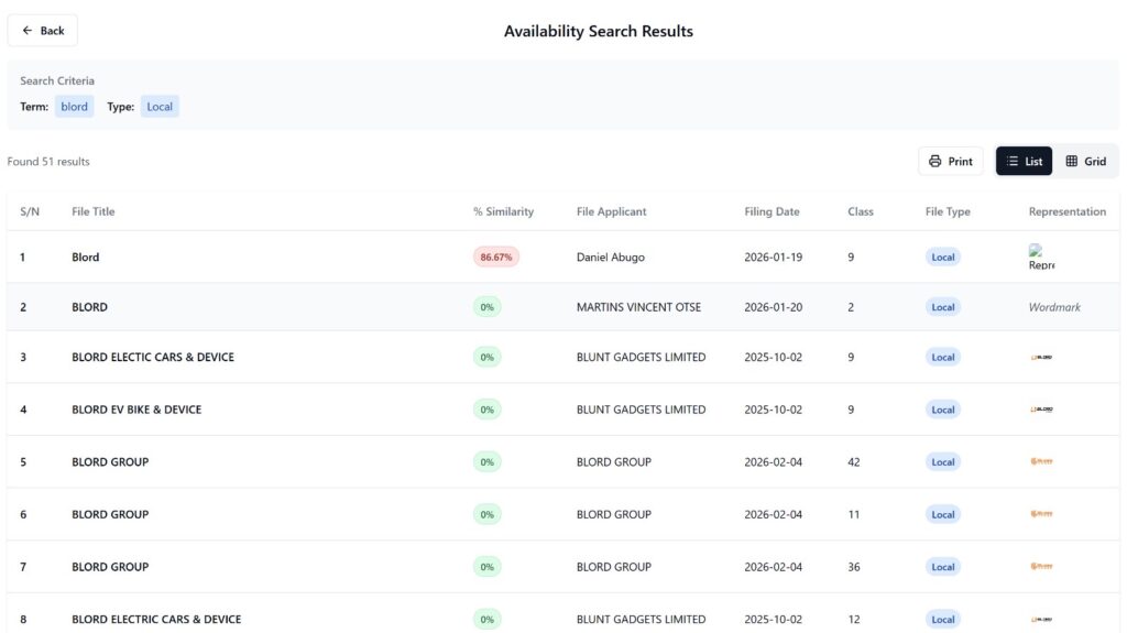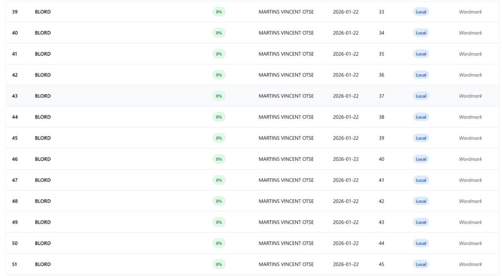 Because Nigerian law treats wordmarks as case-insensitive, VDM’s “BLORD” is legally identical to the “Blord” filed by Daniel Abugo on January 19, one day before VDM’s first application.
