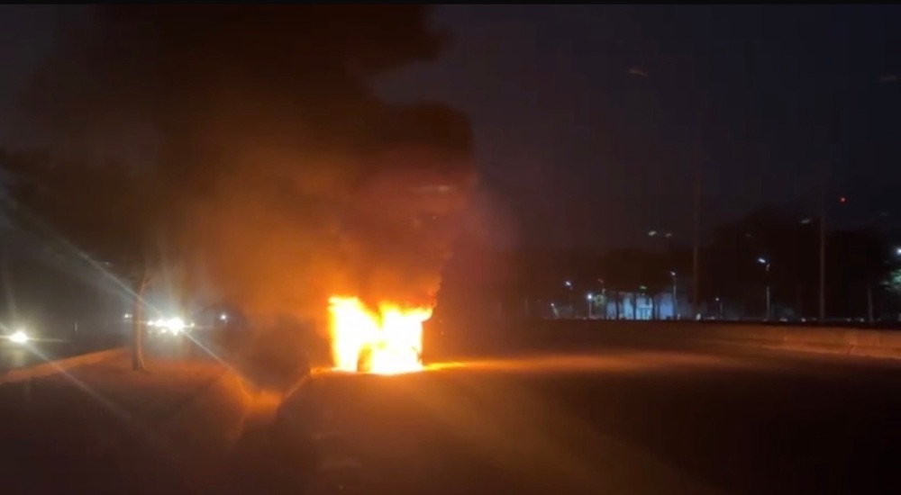 At the scene, commuters watched in shock as the vehicle burned as no owner of the car was present.