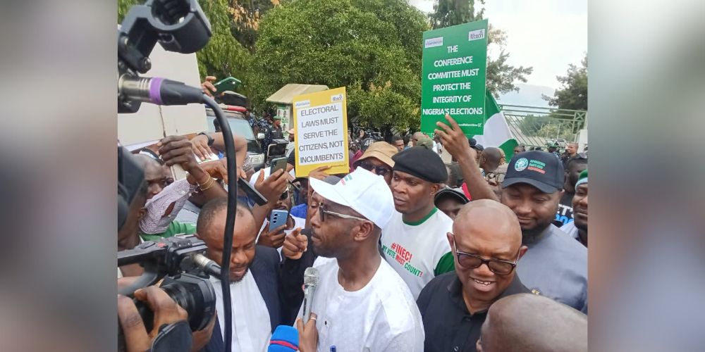 The 2023 presidential candidate of the Labour Party, Peter Obi, on Monday joined the Occupy National Assembly protest in Abuja.