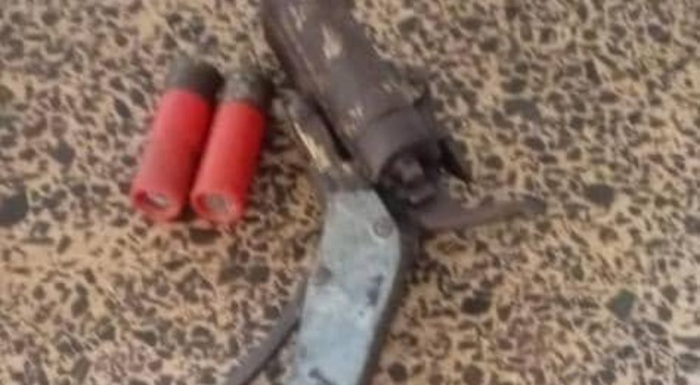 The release stated that a locally made double-barrelled pistol loaded with two live cartridges was recovered from him.