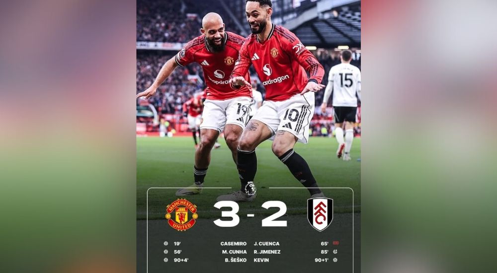 The hosts made it three wins in a row under interim coach Michael Carrick with Casemiro, Matheus Cunha, and Benjamin Sesko scoring the goals.