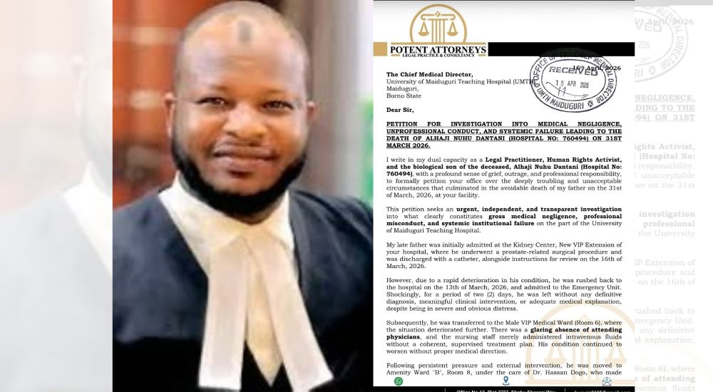 His son, Mr Hamza N. Dantani — a legal practitioner and human rights activist — has since petitioned the hospital’s Chief Medical Director, alleging that a series of avoidable failures killed his father.